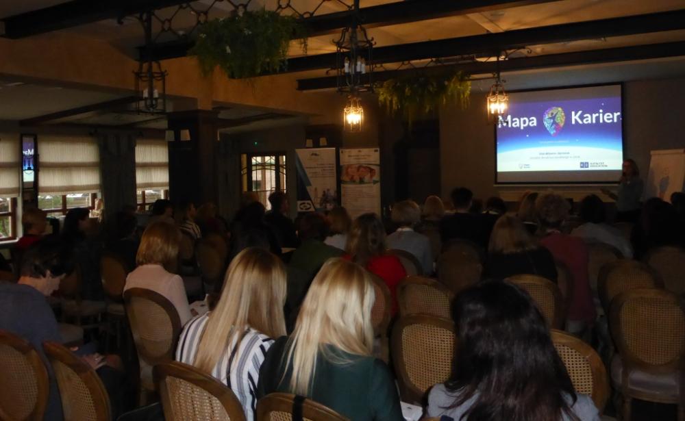 Druga część konferencji miała charakter metodyczny i została poświęcona zagadnieniom związanym z pracą z klientem w zmianie zawodowej, wykorzystaniem myślenia wizualnego w pracy doradcy oraz interaktywnym narzędziom Mapy Karier. Dziękujemy wszystkim uczestnikom wydarzenia za udział oraz inspirującą wymianę doświadczeń.